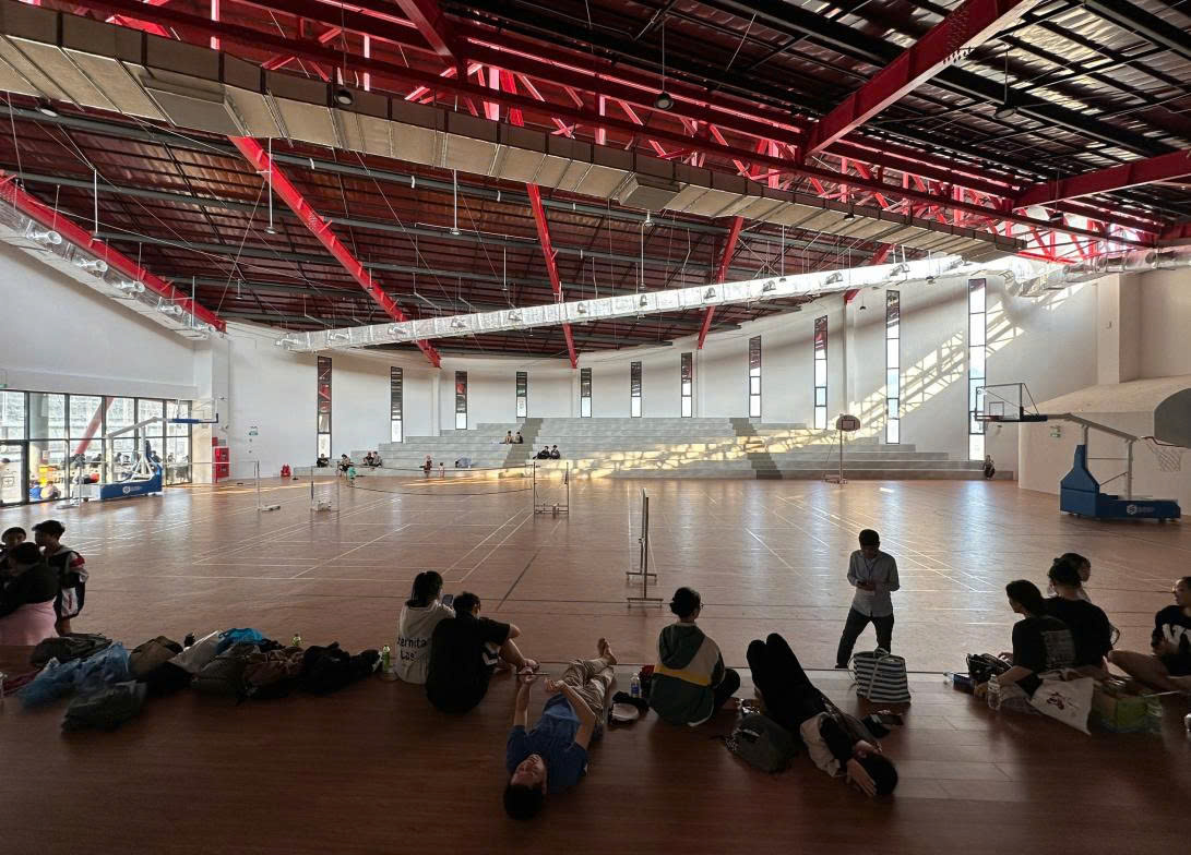 Bên trong nhà thi đấu được trang bị đầy đủ thiết bị, đồ dùng chức năng