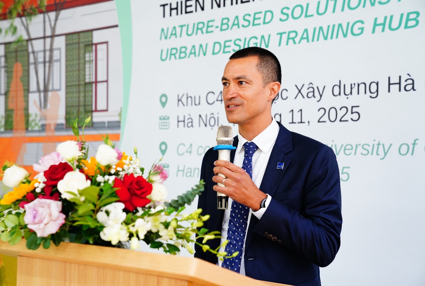 Phát biểu tại buổi lễ, ông Ron H. Slangen – Phó Giám đốc Quốc gia Ngân hàng Phát triển Châu Á (ADB) tại Việt Nam nhấn mạnh, việc đưa các giải pháp dựa vào thiên nhiên vào bối cảnh đào tạo tại trường đại học là bước chuyển rất quan trọng, là nơi mô hình hạ tầng thiên nhiên trở thành trải nghiệm. Ông khẳng định ADB sẽ tiếp tục hỗ trợ các đối tác Việt Nam hướng tới mô hình phát triển đô thị có khả năng chống chịu, lấy bằng chứng thực nghiệm tại địa phương làm nền tảng, thay vì chỉ dựa vào khuyến nghị lý thuyết.