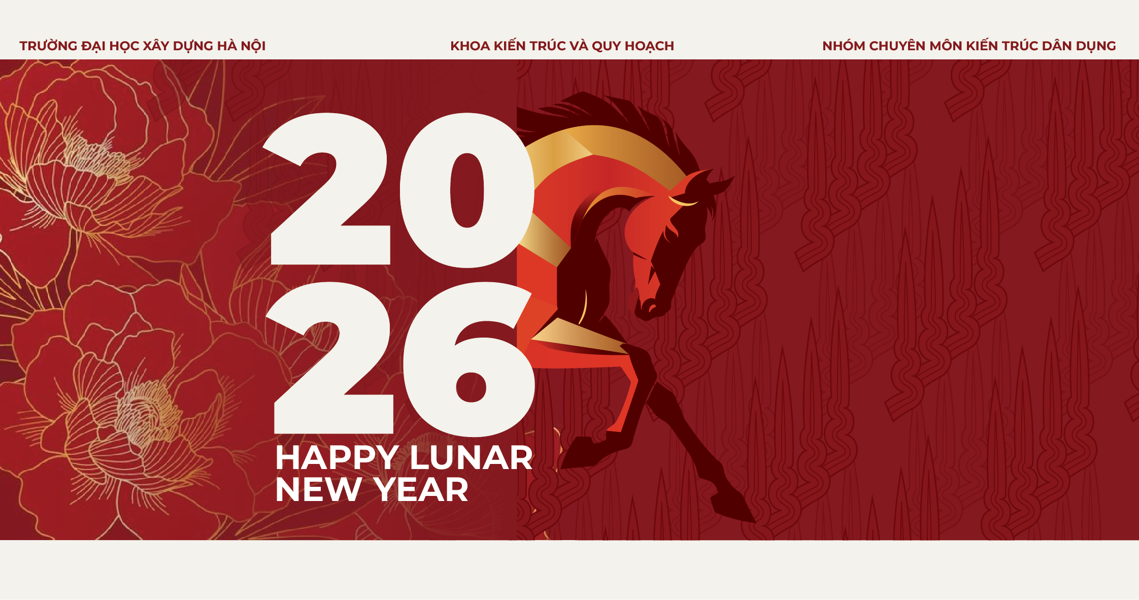 Nhân dịp Xuân Bính Ngọ 2026 – dấu mốc 60 năm hình thành và phát triển của Trường Đại học Xây dựng Hà Nội, thay mặt Nhóm chuyên môn Kiến trúc Dân dụng – Khoa Kiến trúc & Quy hoạch, chúng tôi xin gửi tới các thế hệ thầy cô giáo, cán bộ, nghiên cứu sinh, học viên và sinh viên lời chúc sức khỏe, an khang và nhiều thành tựu mới. Với niềm tự hào truyền thống “Người Xây dựng”, tập thể nhóm chuyên môn Kiến trúc Dân dụng cam kết tiếp tục phát huy giá trị học thuật, đẩy mạnh đổi mới sáng tạo trong đào tạo – nghiên cứu – thực hành, đóng góp thiết thực vào sự phát triển bền vững và vị thế của Nhà trường trong giai đoạn mới.